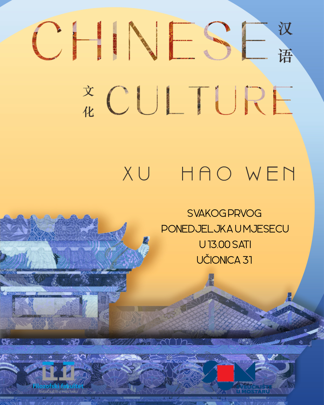 Filozofski fakultet SUM-a nastavlja s ciklusom predavanja i radionica o kineskoj kulturi. Radionice će voditi lektorica Haowen Xu, svakog prvog ponedjeljka u mjesecu u 13.00 sati u učionici broj 31.