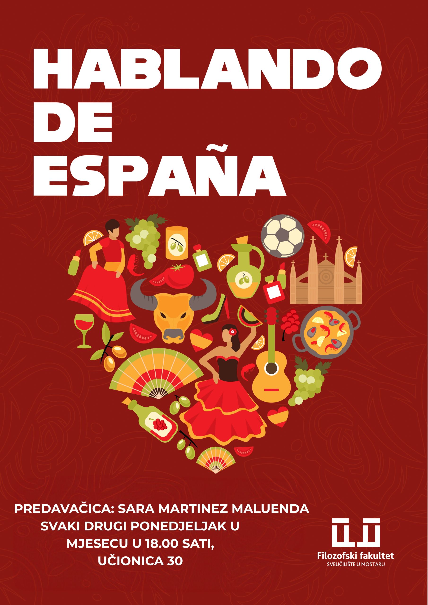 Filozofski fakultet SUM-a nastavlja s ciklusom predavanja o španjolskoj kulturi. Predavanja će držati lektorica španjolskog jezika Sara Martinez Maluenda, svakog drugog ponedjeljka u mjesecu u 18.00 sati u učionici 30.